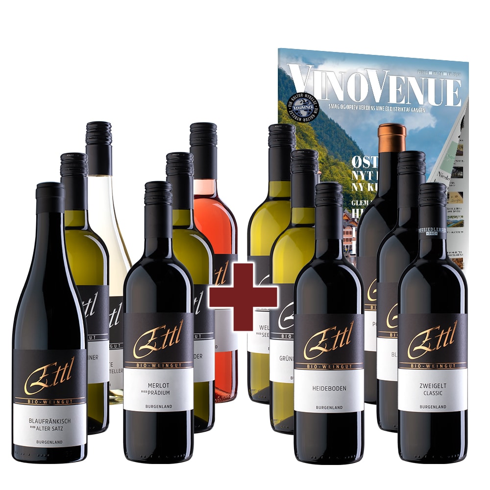 Med dette udvalg af vine modtager du hele Ettls sortiment. Kassen indeholder Alle 12, hvoraf de 7 er medaljevine. I kassen er der 5 hvidvine, 1 rosé og seks røde. Blandt de røde er der også 3 af de højere profilerede vine, som vi alle kun drikker ved særlige anledninger. Rigtig god fonøjelse.