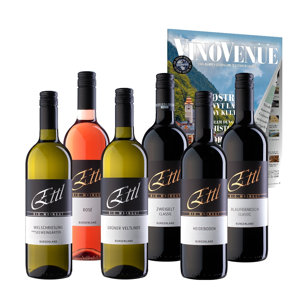 Det er aldrig tidligere sket i VinoVenues historie, at vi har kunnet præsentere en basissmagekasse, der udelukkende indeholder medaljevine, men her er vi gået helt amok. Vinene fra Ettl er generelt overordentlig gode. I konkurrence med andre østrigske producenter ligger de helt i top, og så oven i købet til priser, der er til at betale.